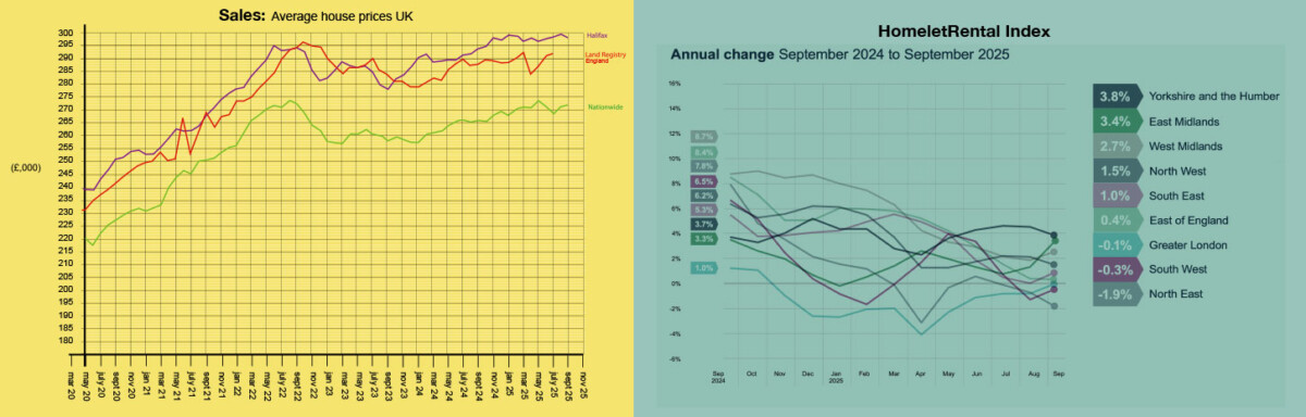 The big lenders’ data paints a similar picture. Nationwide’s HPI recorded a 0.3% monthly rise in October, taking annual growth to 2.4% and average prices to £272,226, while Halifax reports house prices have climbed by 0.6%, pushing annual growth to 1.9% and setting a new record average of £299,862. Both report that mortgage approvals are at their strongest level in 2025, showing underlying demand remains intact.